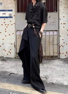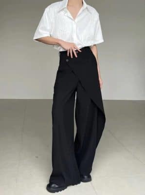 垂墜感不規則造型西裝褲