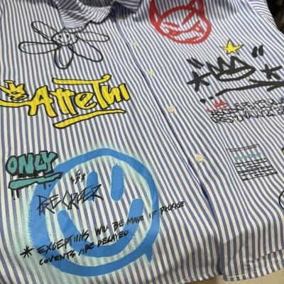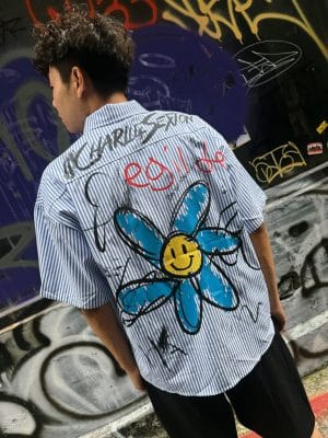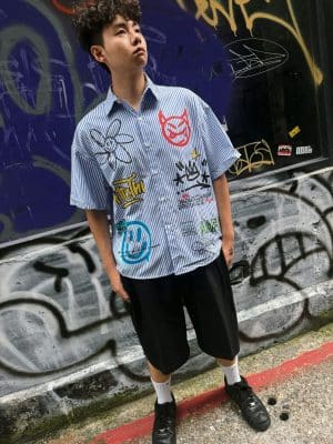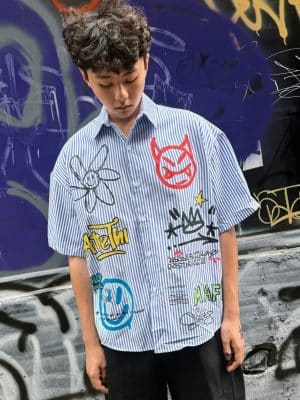 塗鴉條紋短袖襯衫