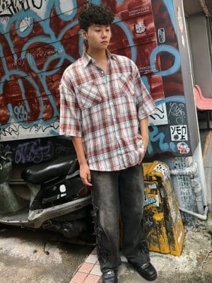 美式復古格子短袖襯衫
