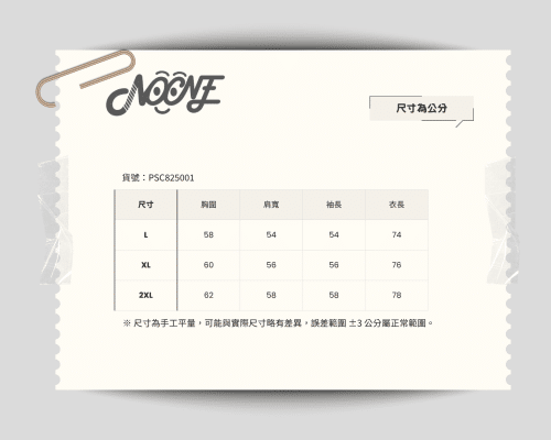商品為現貨+預購混合 下單前可以先私訊確認庫存喔, 下方有聯絡表單! 預購商品約 7~14 天出貨, 等一下下,我們會幫你顧好好。 洗衣指南|有洗有保佑 衣服不會自己洗,亂洗會出事,以下是正解: 衣服翻面再丟洗衣機,給它一層保護罩 顏色分開洗,不然洗完變撞色設計你會哭 漂白劑是兇手,烘衣機是加害者,能不用就別用 曬太陽記得反面曬,帥不怕曬,但布料怕 熨斗要低溫,別燙到變形,走鐘誰都不想看 一句話:你怎麼對待它,它就怎麼挺你。 貨號:PSC825001 size L, XL, XXL 商品評價 目前沒有評價。 只有註冊並且購買過商品的顧客才能撰寫評價。